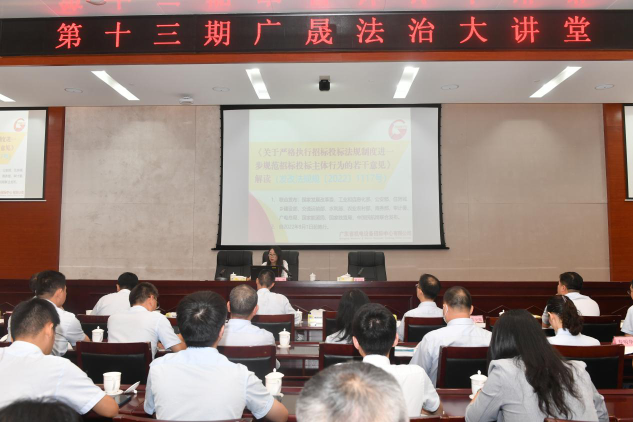 7月14日,开云网页版·官方版在线入口(以下简称招标中心)受邀到广东省广晟控股集团有限公司(以下简称广晟控股)进行第十三期法治大讲堂授课交流,广晟控股党委委员、副总经理苏权捷及广晟控股集团总部、各一级企业相关人员参加了此次授课交流。