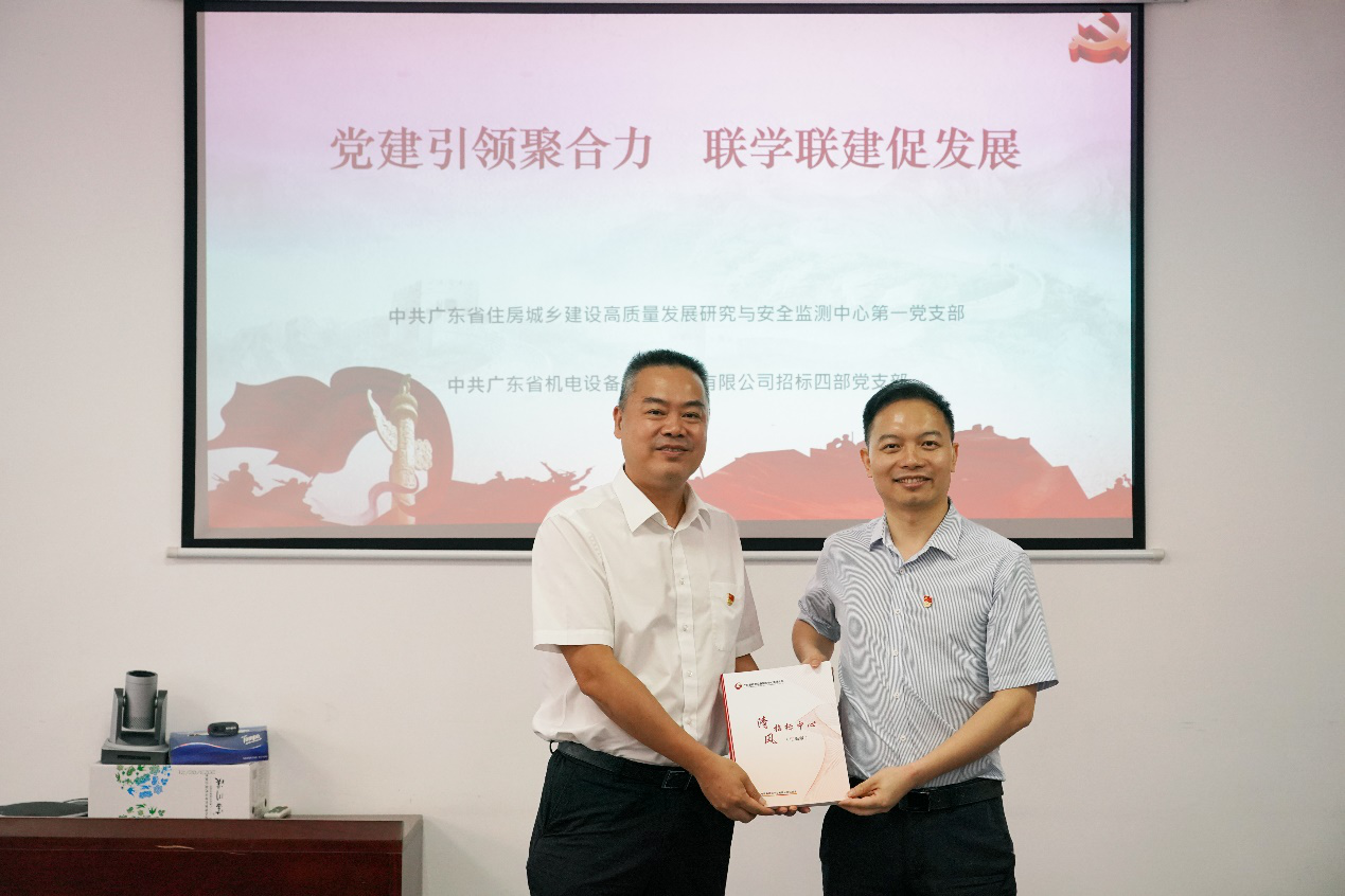 在“七一”建党节来临之际,为庆祝中国共产党成立103周年,6月28日上午,开云网页版·官方版在线入口(以下简称招标中心)招标四部党支部、广东省住房城乡建设高质量发展研究与安全监测中心(以下简称发展与安全中心)第一党支部开展“党建引领聚合力 联学联建促发展”为主题的党建共建活动。招标中心党总支书记、执行董事、总经理邹吉炎接待了来访人员。发展与安全中心党总支书记黄守新以及双方有关人员参加了本次活动。