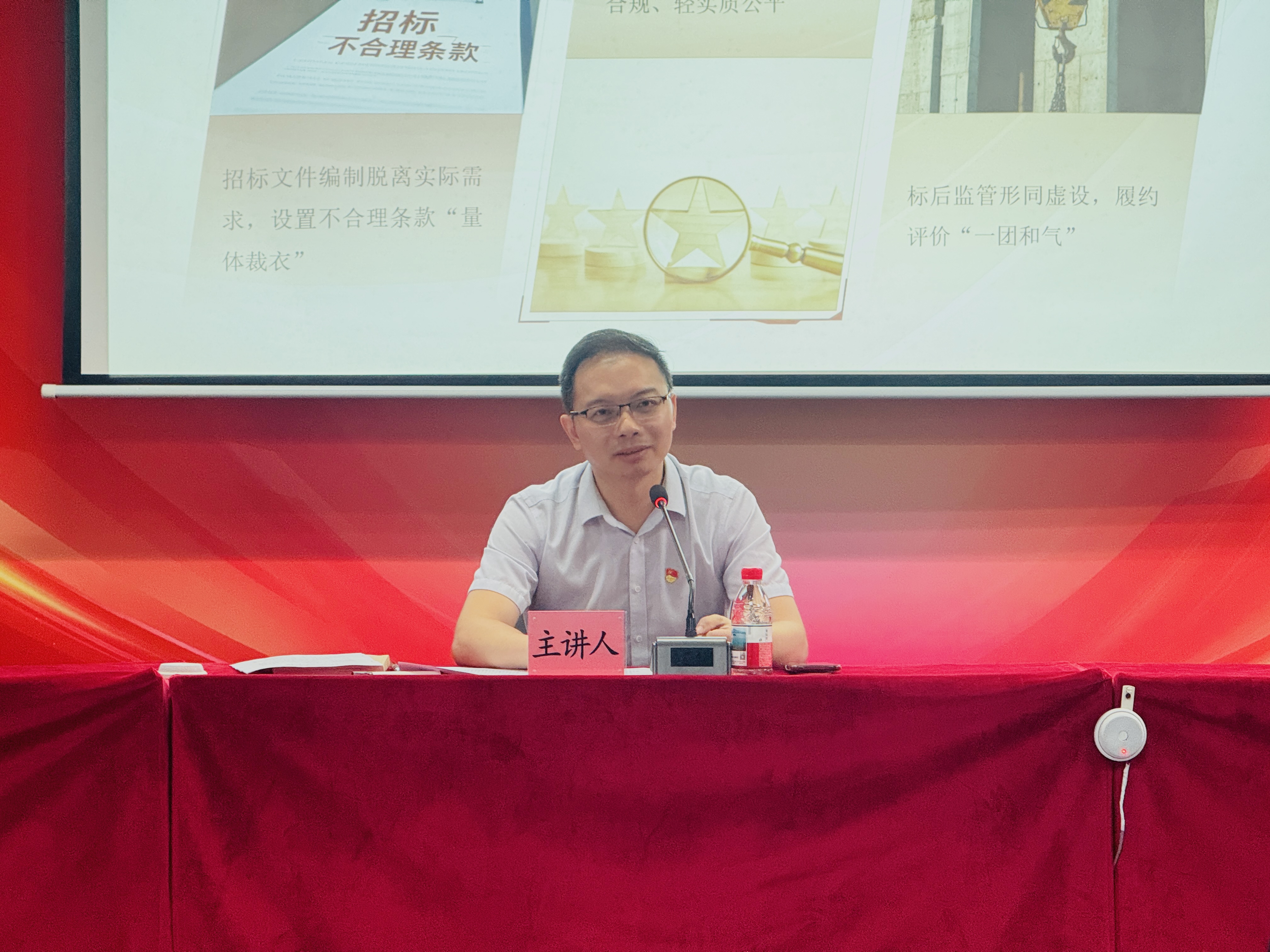 为深入学习贯彻全面从严治党要求,持续巩固风清气正的干事创业环境,6月18日下午,招标中心党总支书记、执行董事、总经理邹吉炎同志以《贯彻落实中央八项规定精神 筑牢招投标领域廉洁防线》为题,为招标中心全体党员干部讲授了一堂主题鲜明、内涵深刻、发人深省的廉洁教育专题党课。